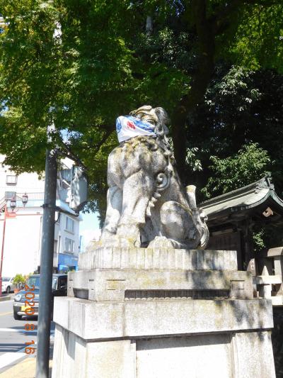 狛犬様は大きくて立派!コロナ対策で、マスクを着用されていました。- 旅行時期