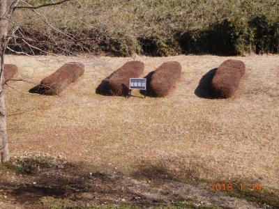 駐車場のすぐ脇には、復元ですが前方後円墳があります。
