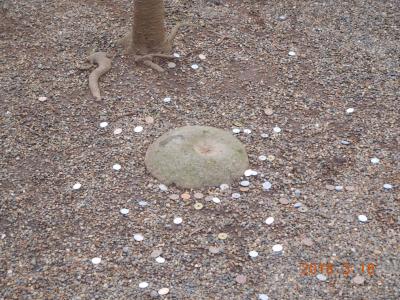 そして忘れてはいけない「要石」ですね。香取神宮の要石と大鯰をおさえているという有名な話があるソレです。こちらは少しくぼみがありました。