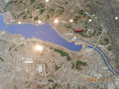 ボタンを押すと、川の場所やらが光って教えてくれる大きな地図には興味を示していました。