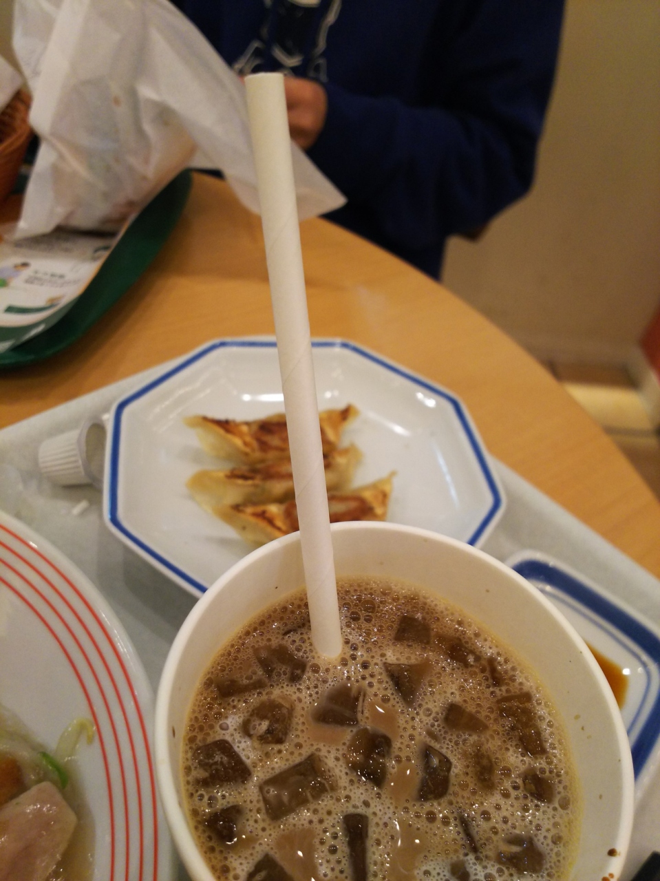ビックリしましたが、アイスコーヒーのストローが紙になっていました。