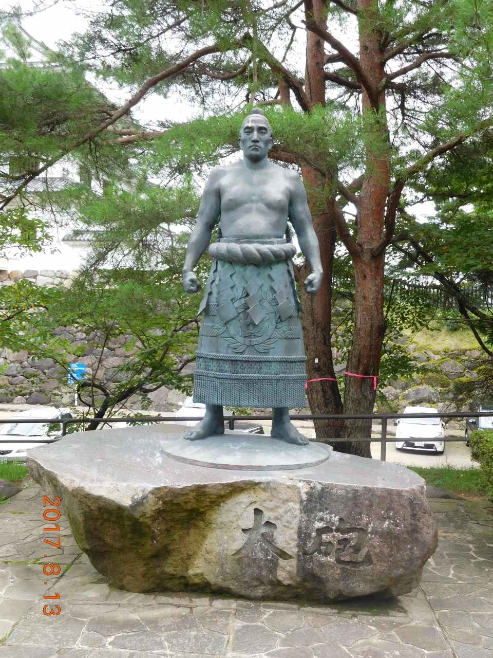 見どころの多くは白石城関係になってしまいますが、二の丸跡には第十八第横綱の大砲の立派な像があります。そして、ブランコもあります。
