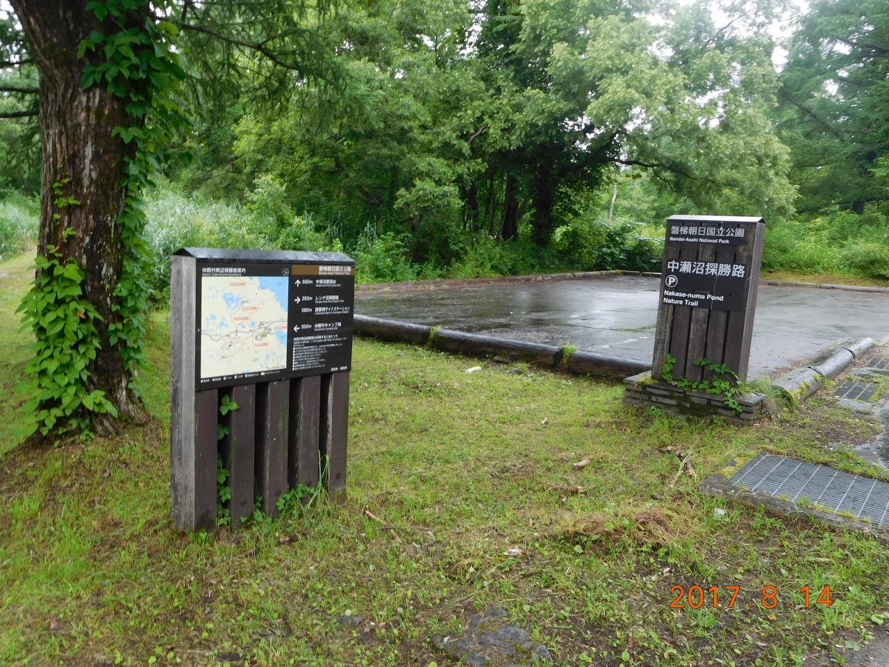 裏磐梯ライジングサンホテルからすぐ近く、中瀬沼探勝路はあります。