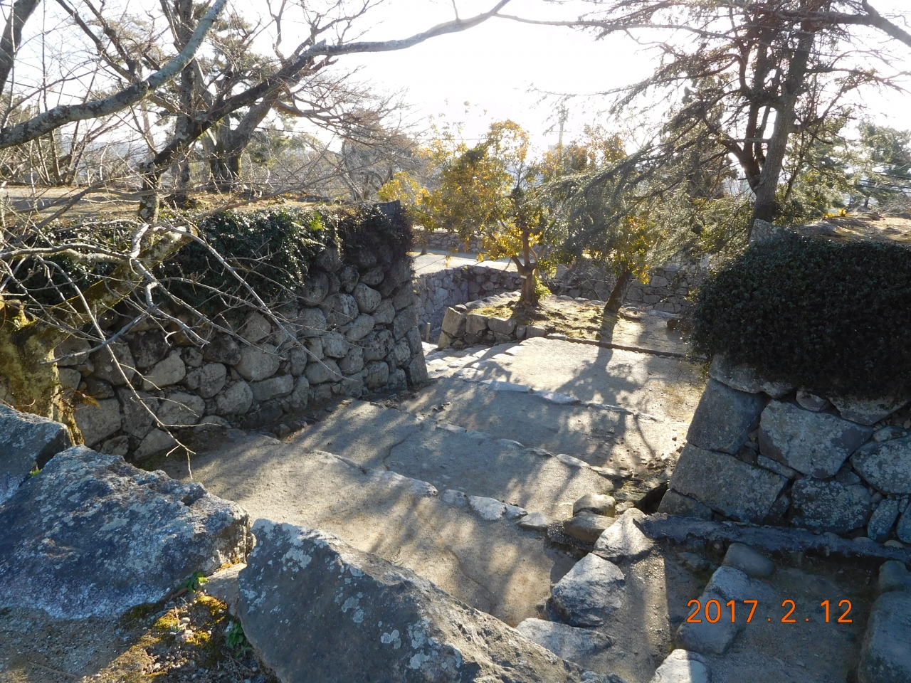 石垣の脇から反り具合を眺める。井戸をのぞいてみる。櫓跡・天守台に立ってみる。