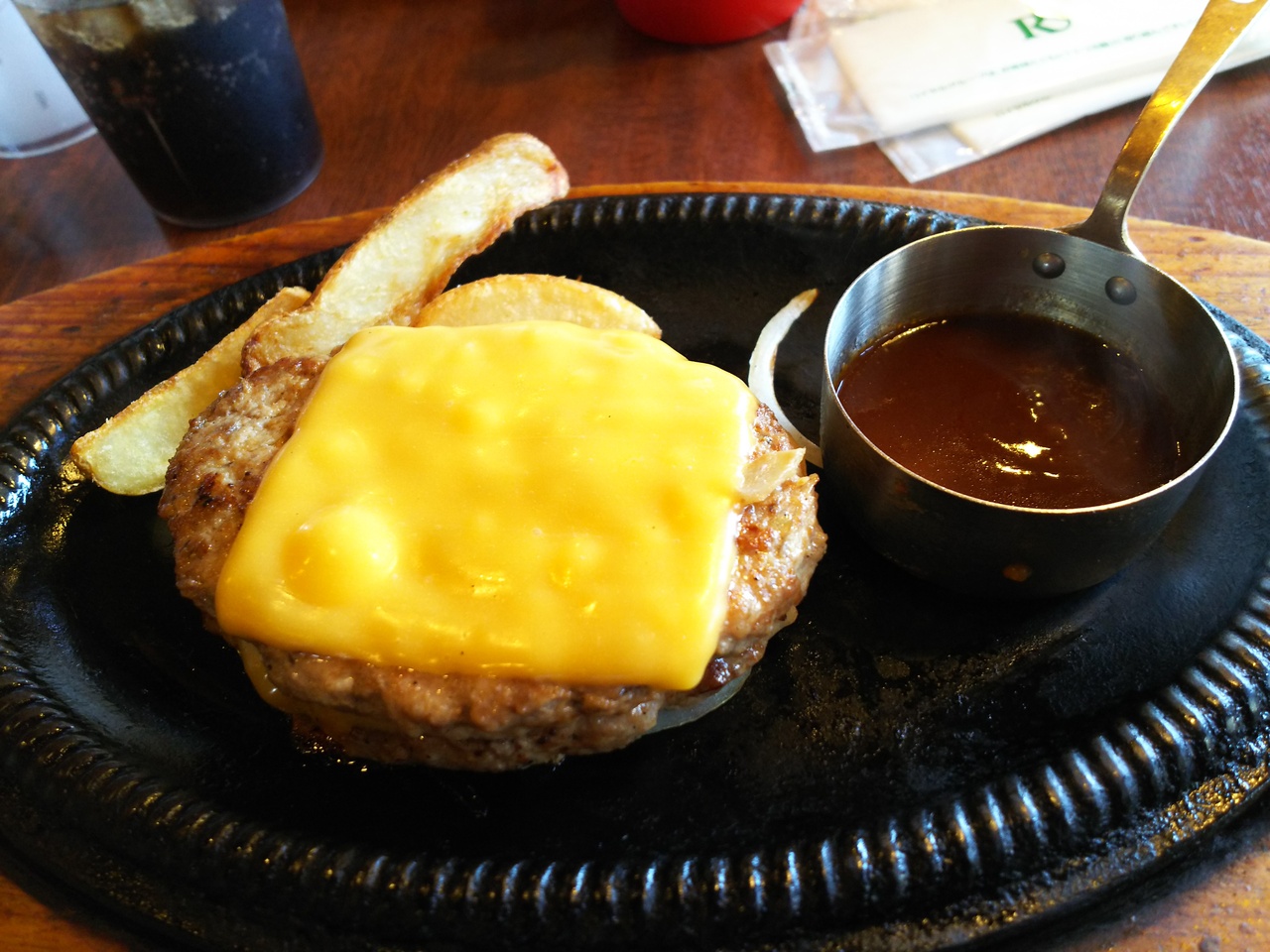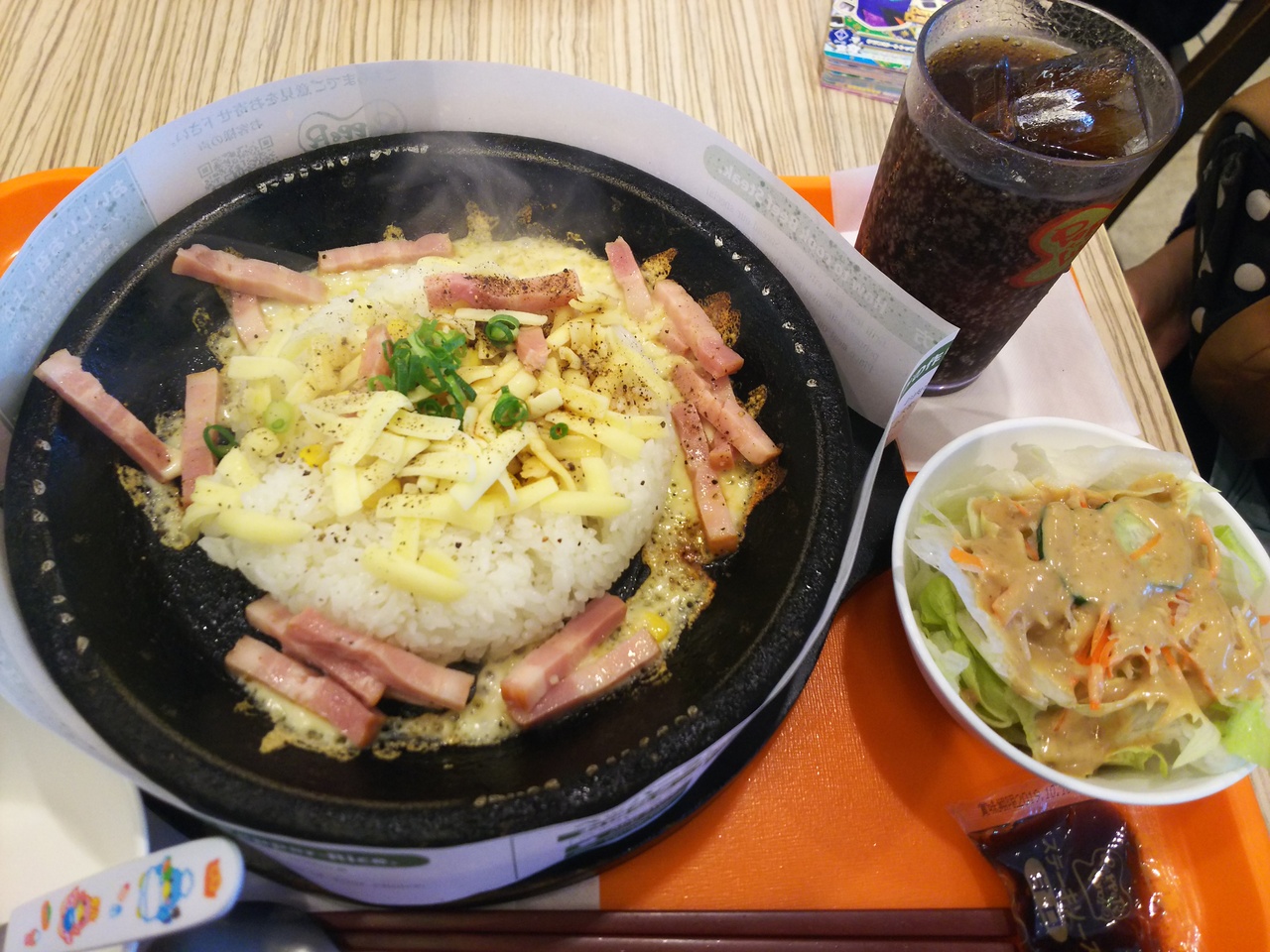 ビーフペッパーランチを注文する事が多いのですが、今日はベーコンチーズペッパーランチ(M)+サラダドリンクセットに。お肉だけじゃなく、野菜も食べられるのは良いですよね♪