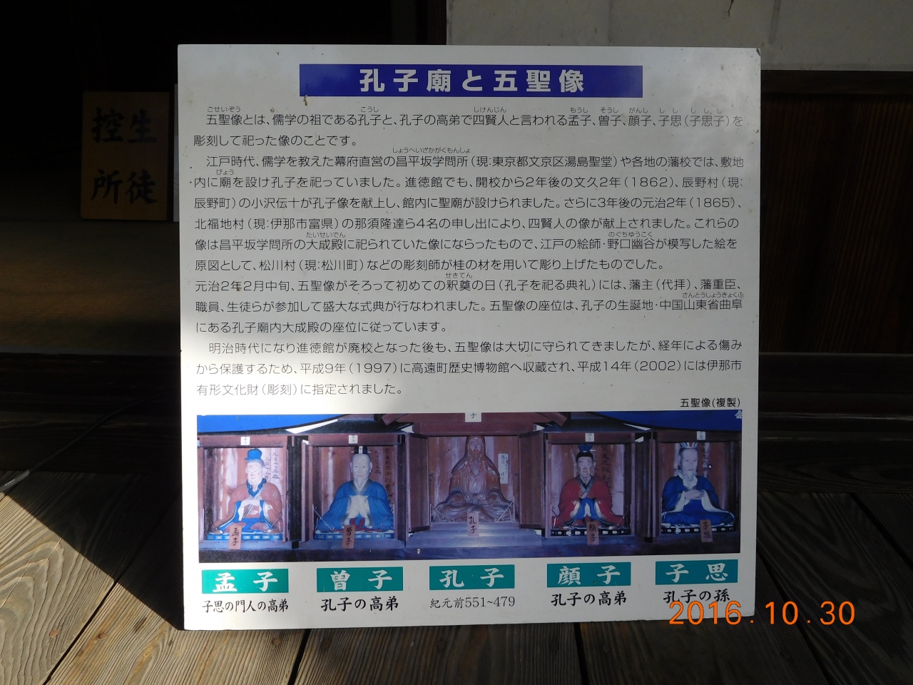一番の見どころは聖廟と五聖像ですね。遠目からですが、見ごたえがあります。