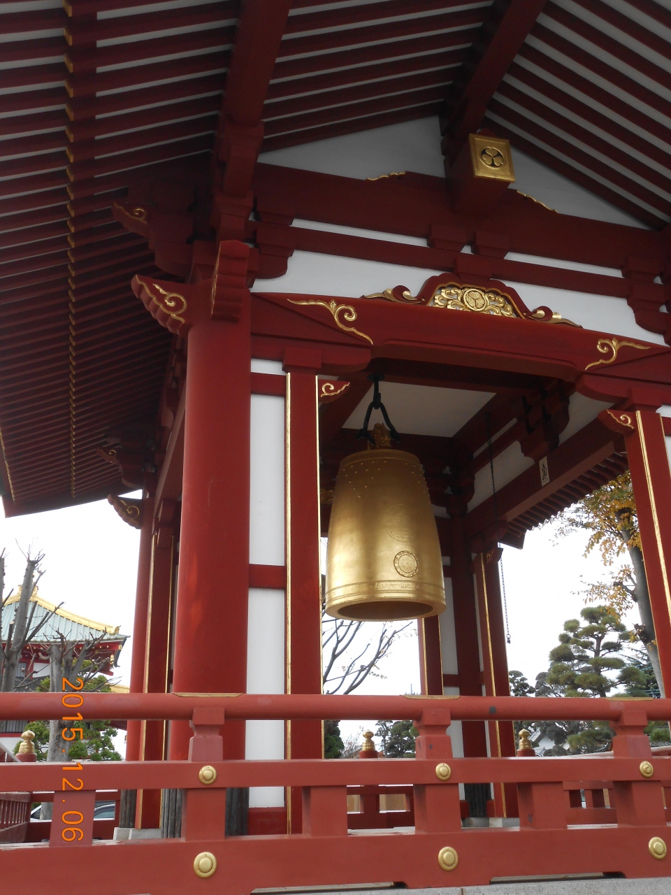 境内には金ぴかな大梵鐘!!そして有形文化財になっている銅鐘もあります。この銅鐘の竜頭は蒲牢(想像上の動物)の首をあらわしているそうですよ。