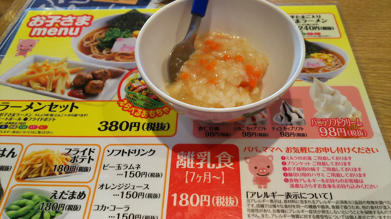 あと、離乳食も置いてありました。ラーメン屋さんに離乳食!!