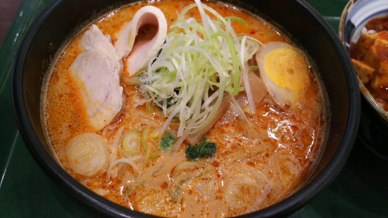 味噌白湯麺、めずらしい!と思い注文。お腹が空いていたので、セットの麻婆丼もつけました。