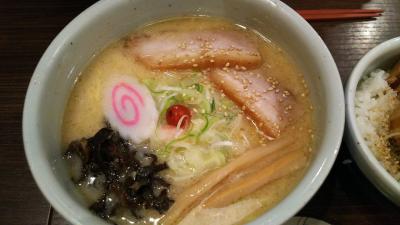 旦那は塩らーめん、チャーシューご飯セット。どんぶりは小ぶり。塩らーめんなのに色も味も塩っぽくない。不思議な感じでした。- 旅行時期
