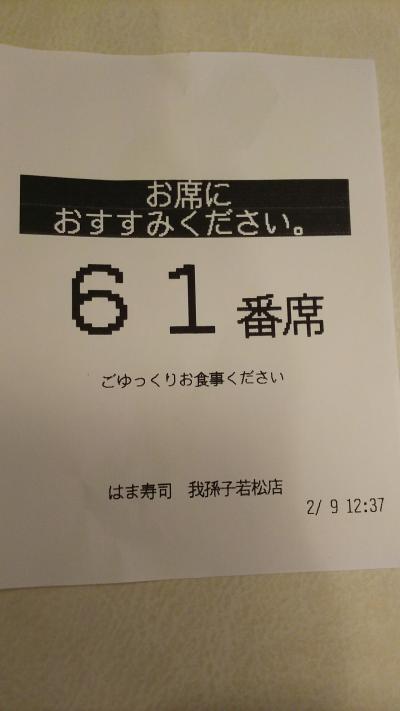 ペッパーくんから「61番席 お席におすすみください」の紙を受け取りました。