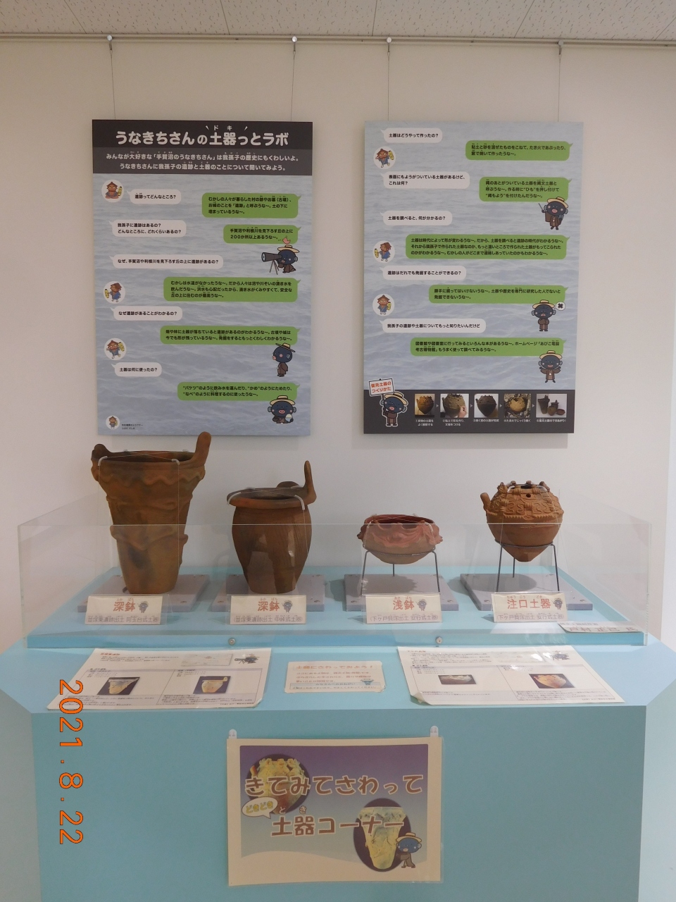 2階には学習コーナーがあり、我孫子で出土した土器もみれます。立派な土器でした。