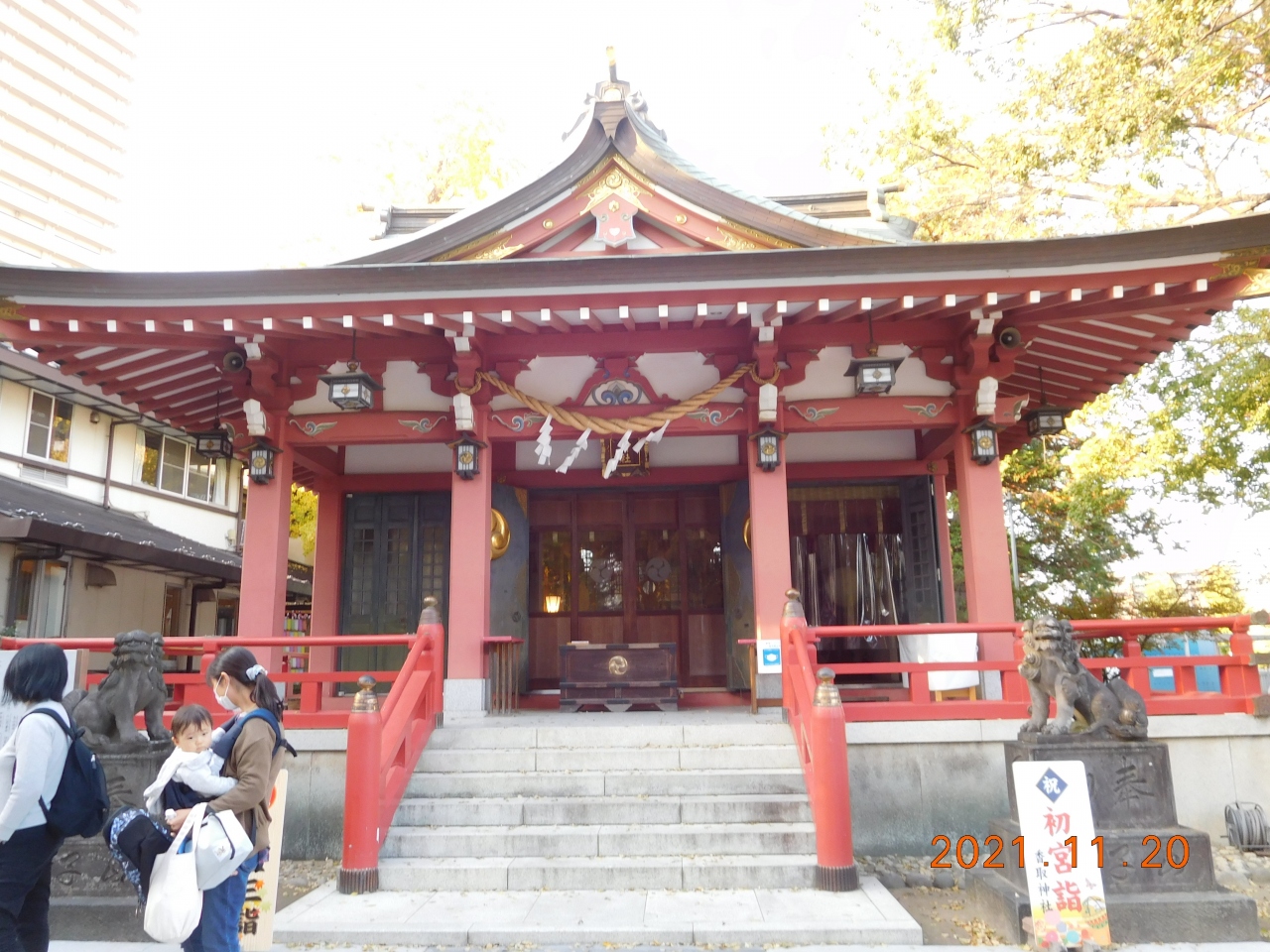 拝殿は華やかな朱色。本殿の彫刻は細かくて立派。重要指定文化財だそうです。