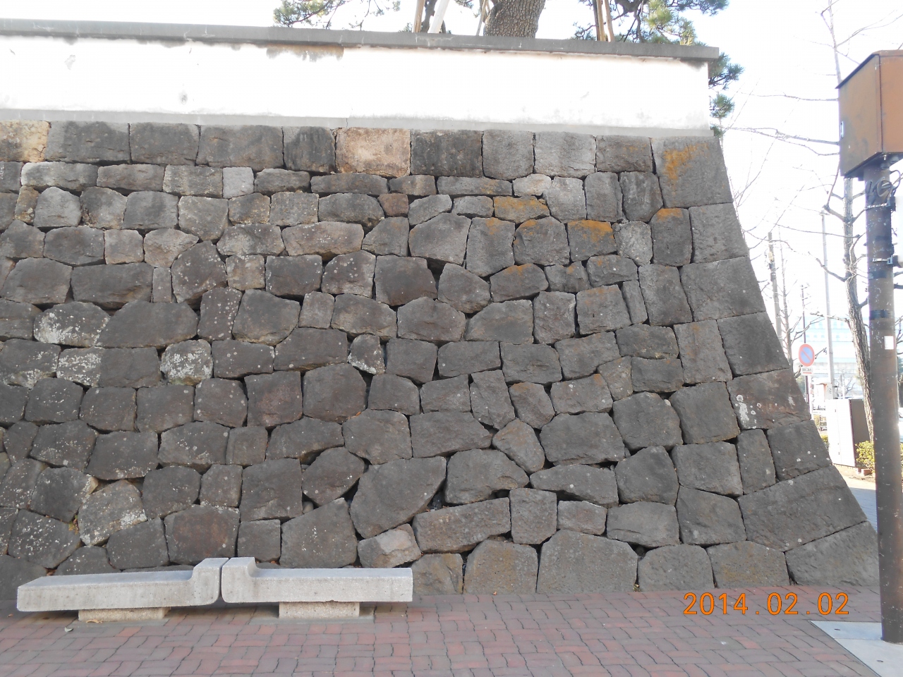 大手門から本丸方面に向かうところの同心番所手前に、大手三の門跡。