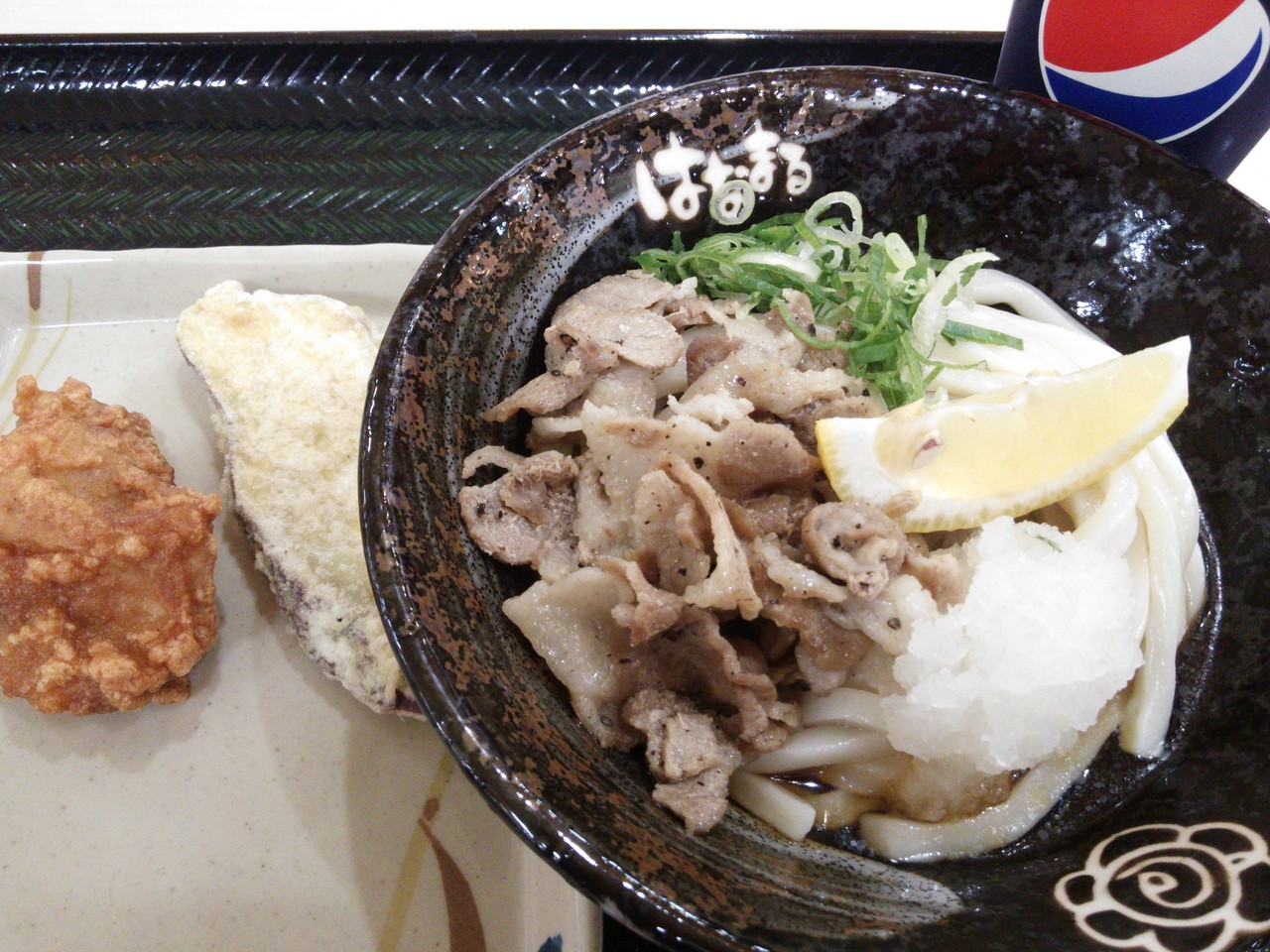 今日は「冷たい塩豚おろしぶっかけうどん」にしました。うどんはモチモチで美味しかった!さつまいも天ぷらも甘くて好みでした。- 旅行時期