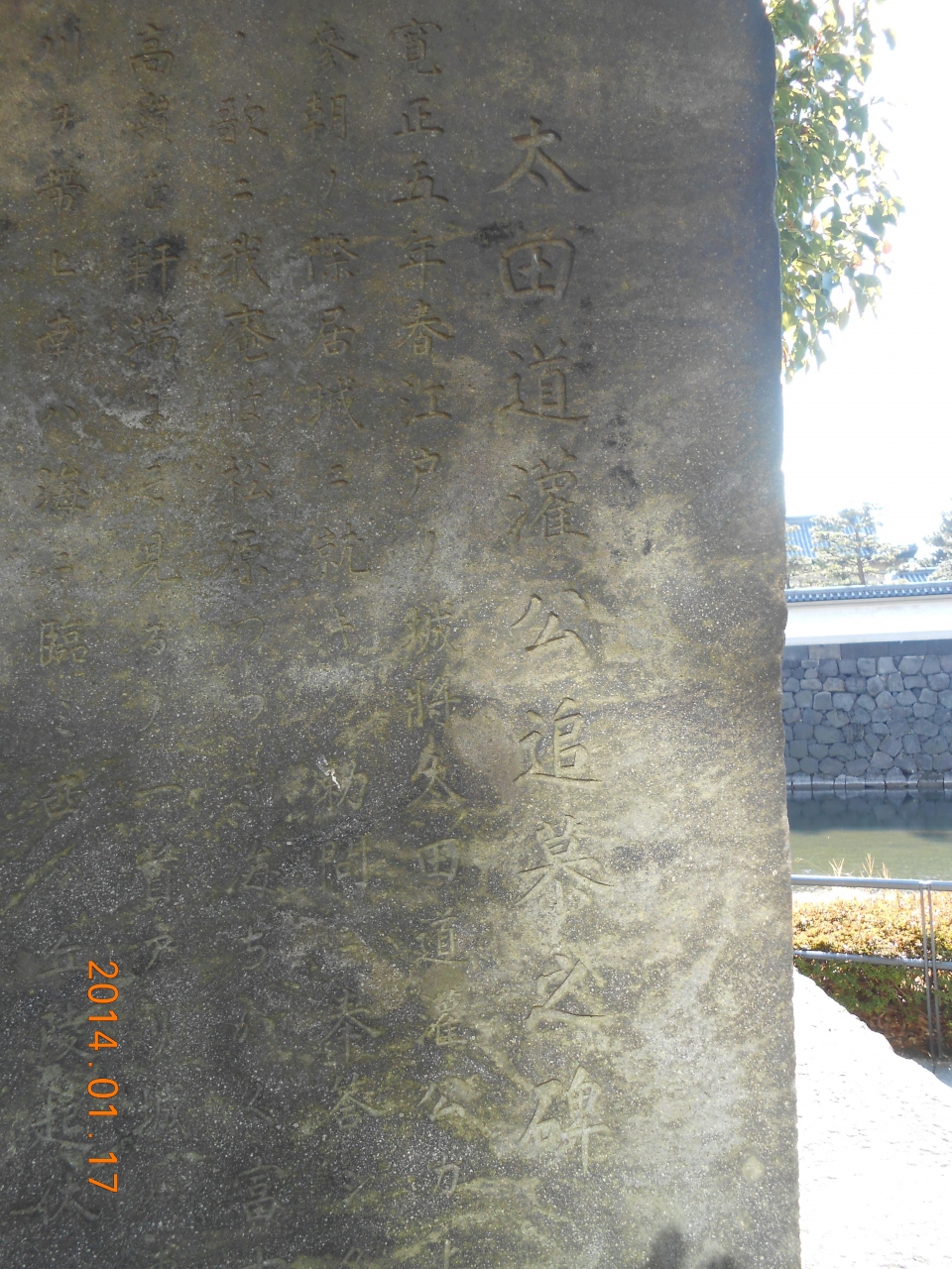太田道灌公追慕の碑は、大手濠沿い平川門近くにあります。