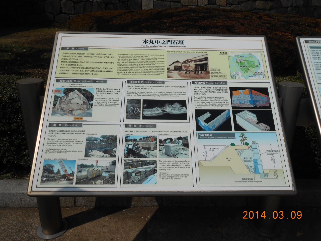 中之門石垣については、とても詳しい解説や解体によって明らかになった事実などが書いてある解説板があるので、是非見逃さないよう要チェック!- 旅行時期