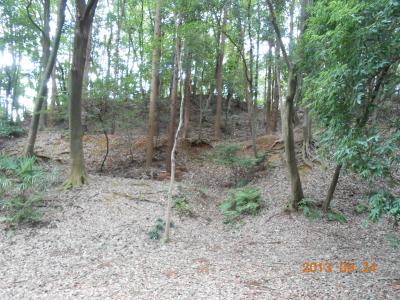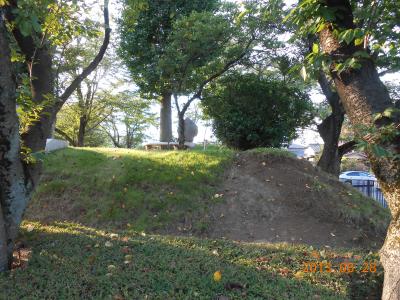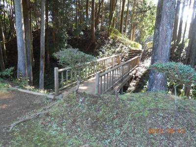 駐車場に車を停めると、もう城跡です。木が生い茂っていますが、郭がしっかり残っています。副郭に説明板と石碑があります。説明板には図解があって解りやすいですよ。整備もされているので、とても歩きやすいです。