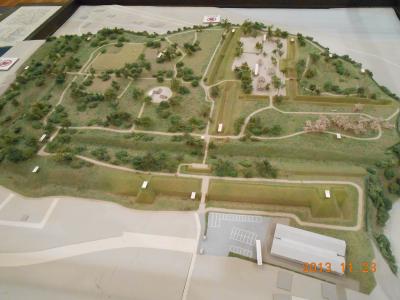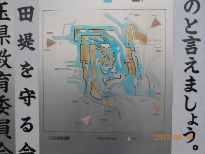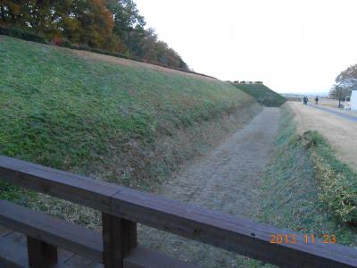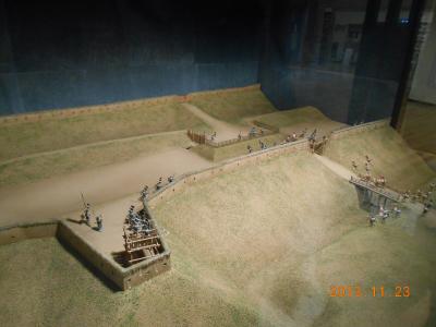 史跡公園では、当時の詳しい解説と、断面が見ることが出来るのですが、この断面のガラス?が光ってしまって見えにくい…。ただ、とても大きかったことはわかります!1週間という時間で、この規模を築くなんて、相当人力と賃金がかかった事でしょう。