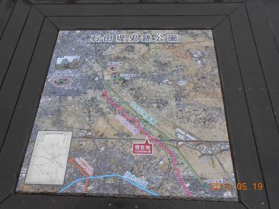ここでは、行田市堤根(石碑と駐車場があります。)から鴻巣市袋(石田堤史跡公園)までの250mほど見ることが出来ます。
