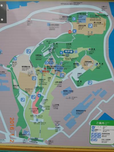 平戸観光交流センターでした。ここの駐車場から見える平戸城もまた素敵な表情を見せていました。ずいぶん高いところにお城があるなぁ、と改めて感じることもできました。