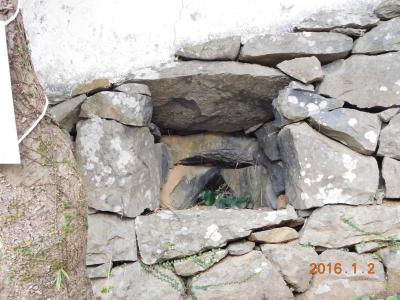 登城口の階段を進むとすぐ虎口があり、見事な枡形!上ると亀岡神社があります。
