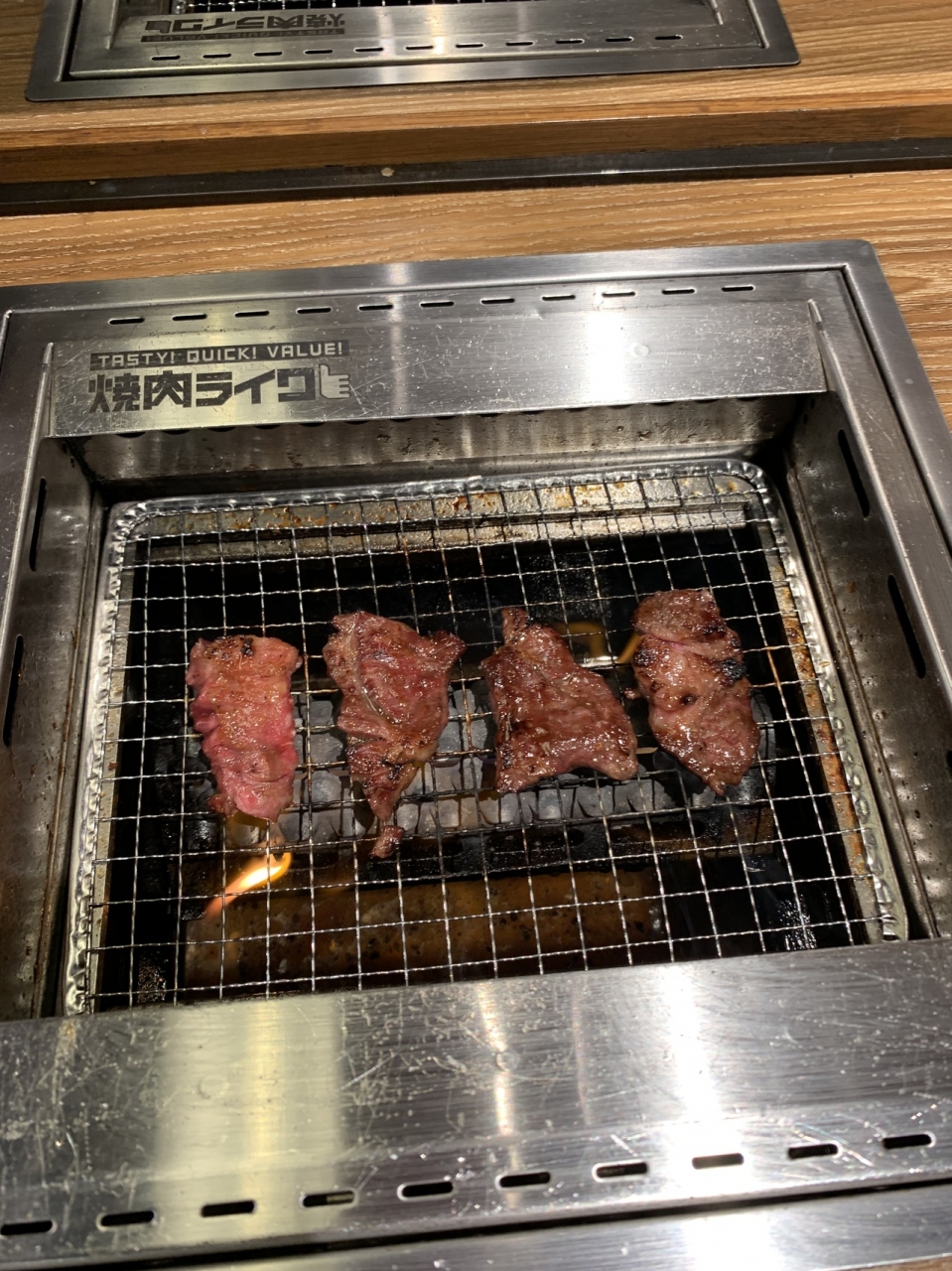 1人1台ずつ用意されたロースターで、手頃な値段設定の焼肉を食べられます。