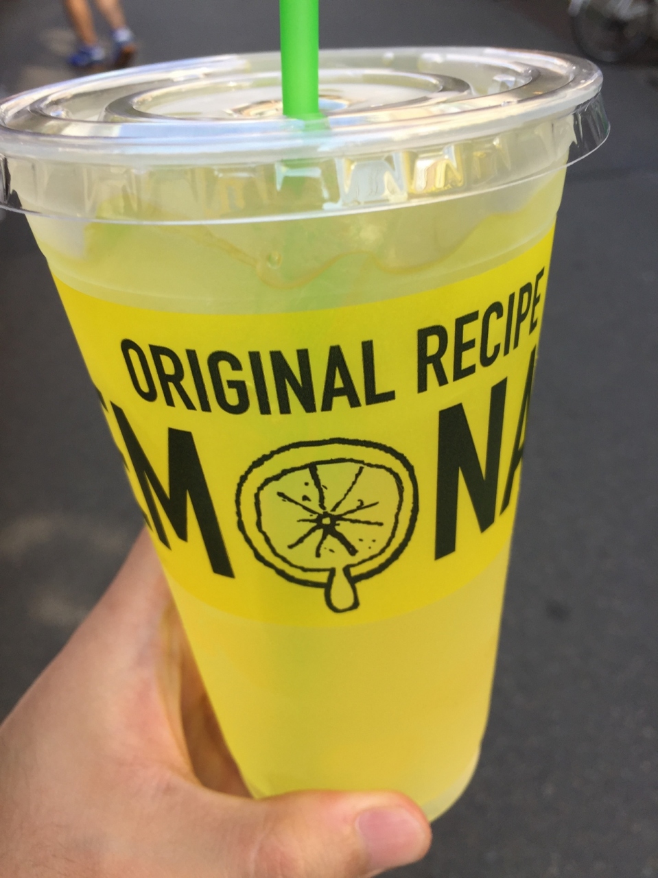 オリジナルレモネードにレモンを追加で注文しましたが、プラスチックのコップに注がれたレモネードに目の前でレモン汁を絞って入れてくれます。