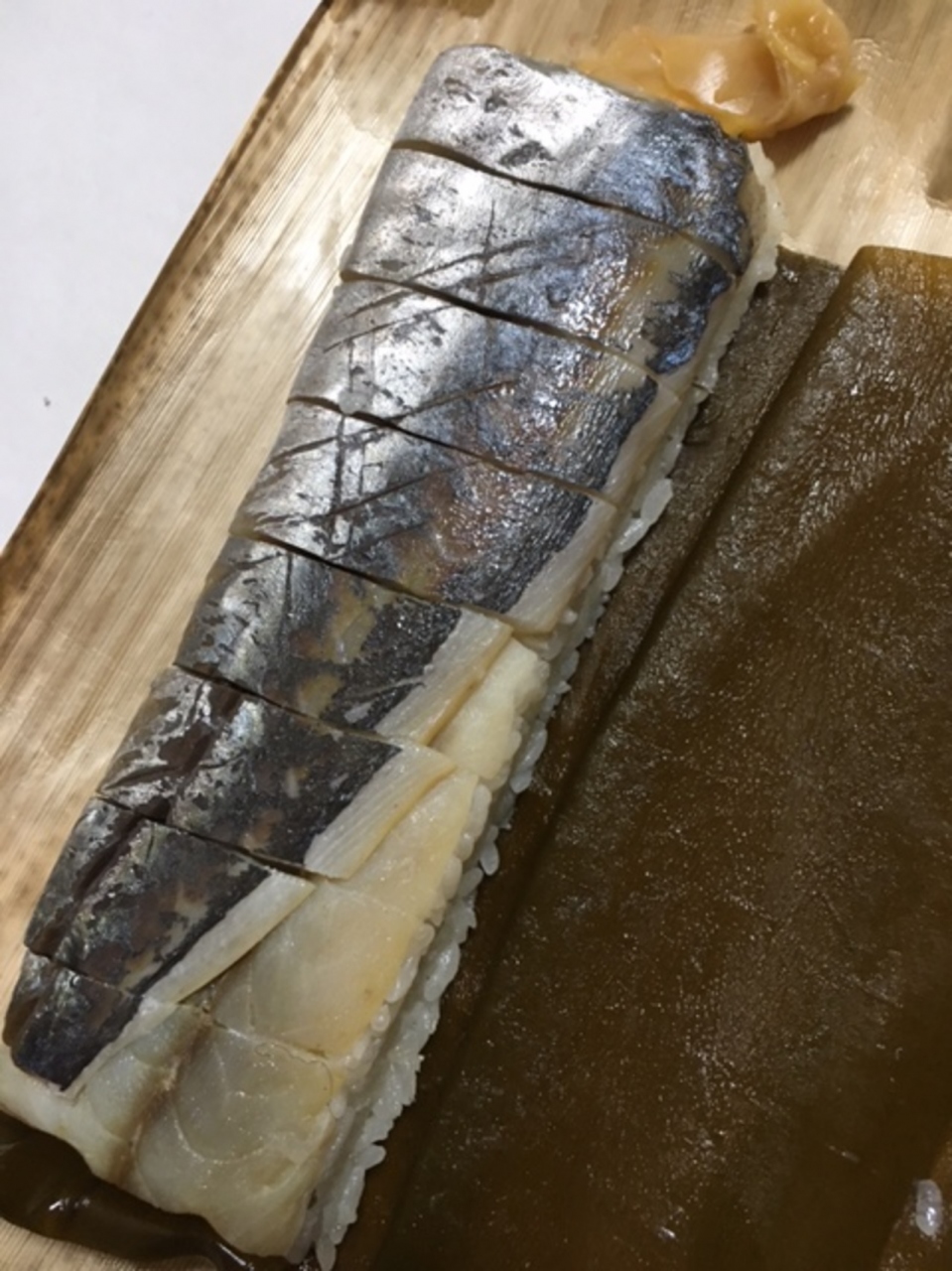 昆布で巻かれたお寿司には身の厚い鯵が入っており、酢飯の加減も良い塩梅でした。