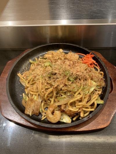内容はサラダ、とん平焼き、道頓堀焼き(お好み焼き)、ミックス焼きそばです。