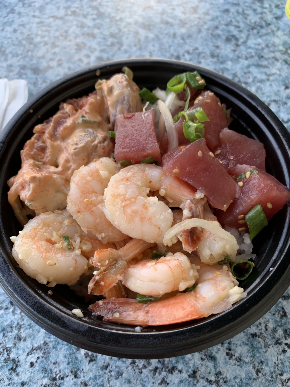 こちらのポキ丼はポキを3種類チョイス出来るのですが、今回はベタに醤油、スパイシー、ガーリックシュリンプにしました。