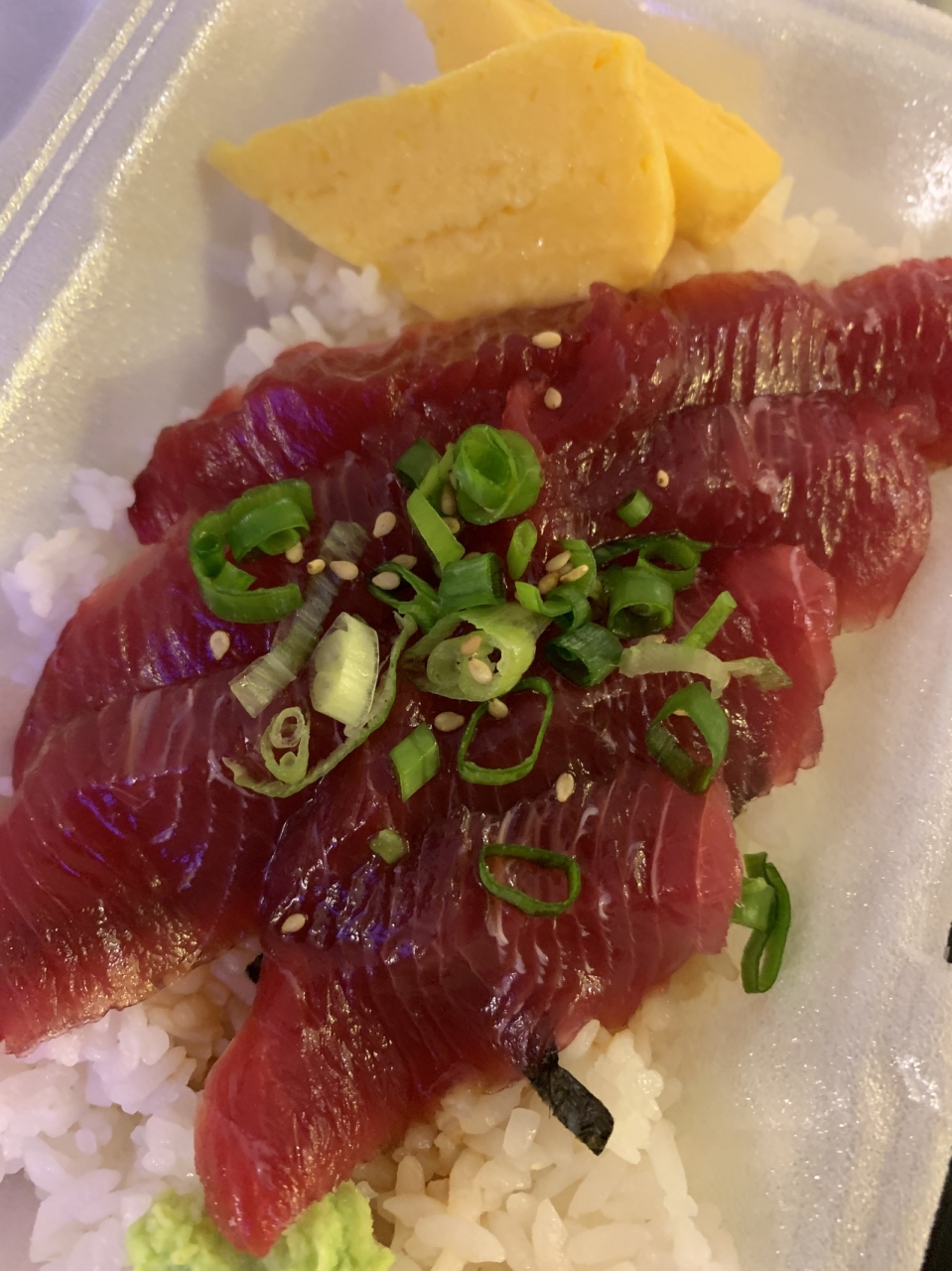 マグロ丼は日本で食べる鉄火丼に非常に近い味で日本人にはホッとする味でした。