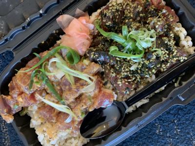 今回は人気があるというマグロ丼とポキ(梅しそ)を注文しました。