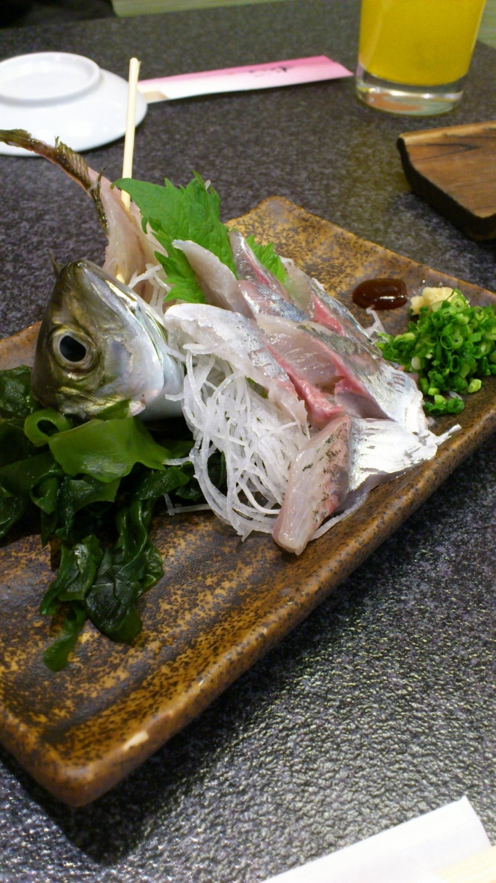 寿司を食べる前に、鯵のお造りを頂きましたが、まだ鯵の身がピクピクと動いていて美味しかったです!!