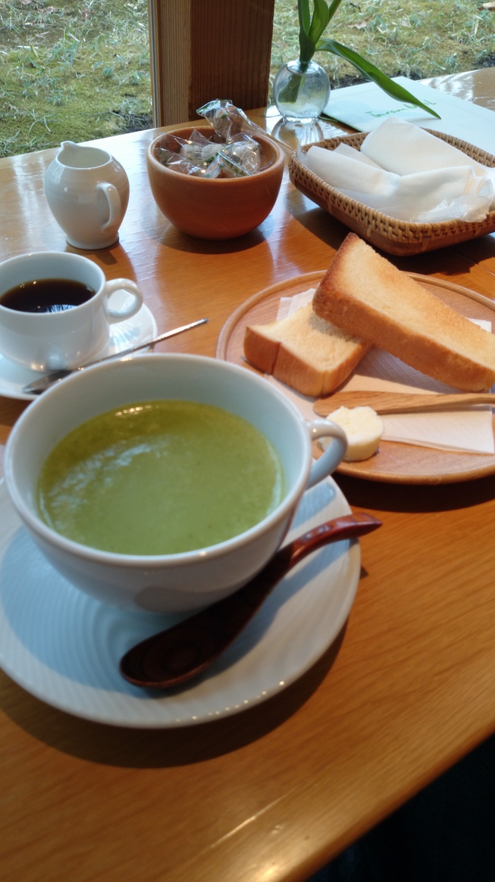 運ばれてきたスープは、緑色をしたクレソンのポタージュ。