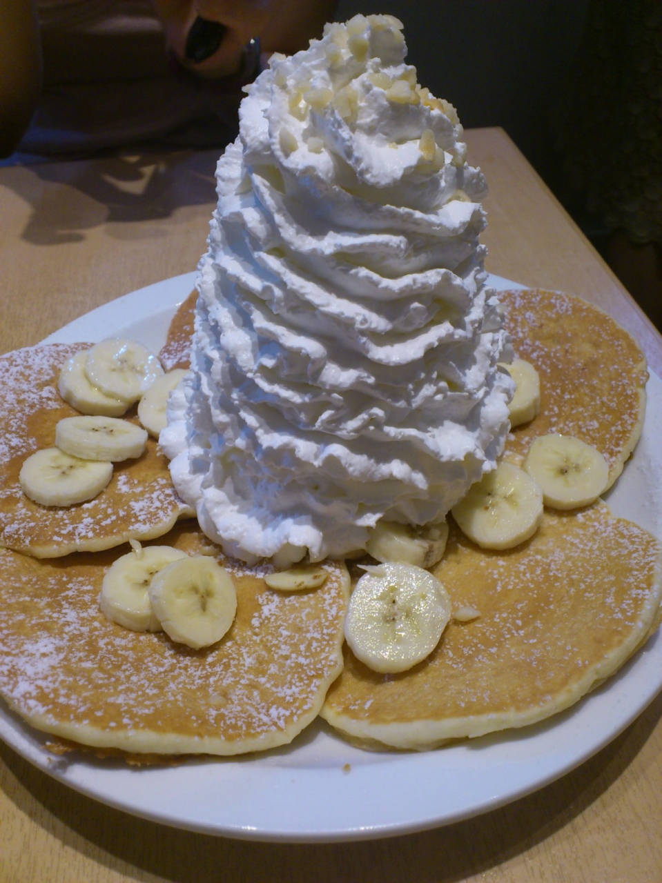 日本のホットケーキとは違い、生地は甘みが少なくモチッとしていて、その上に大量の生クリームがのっています。