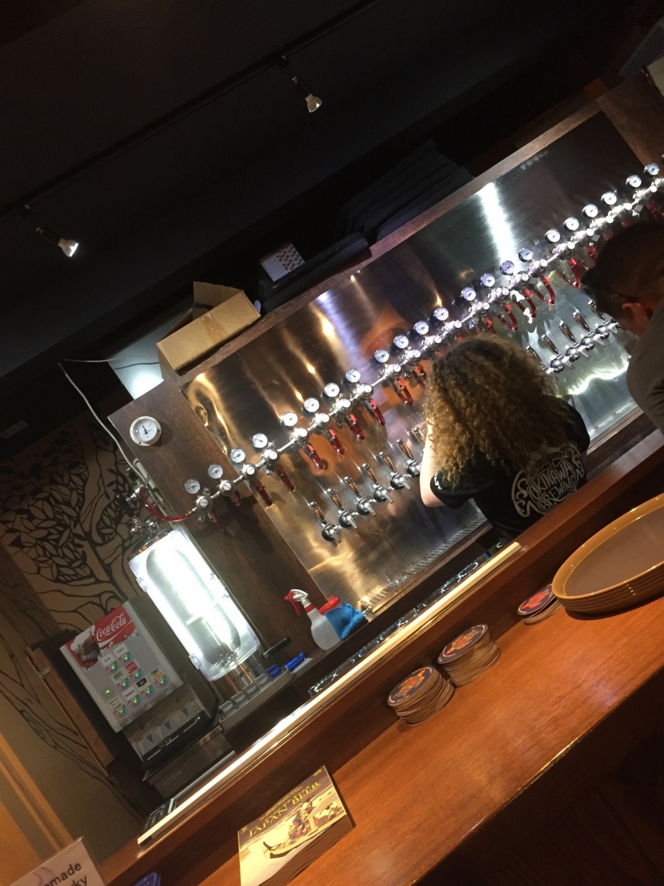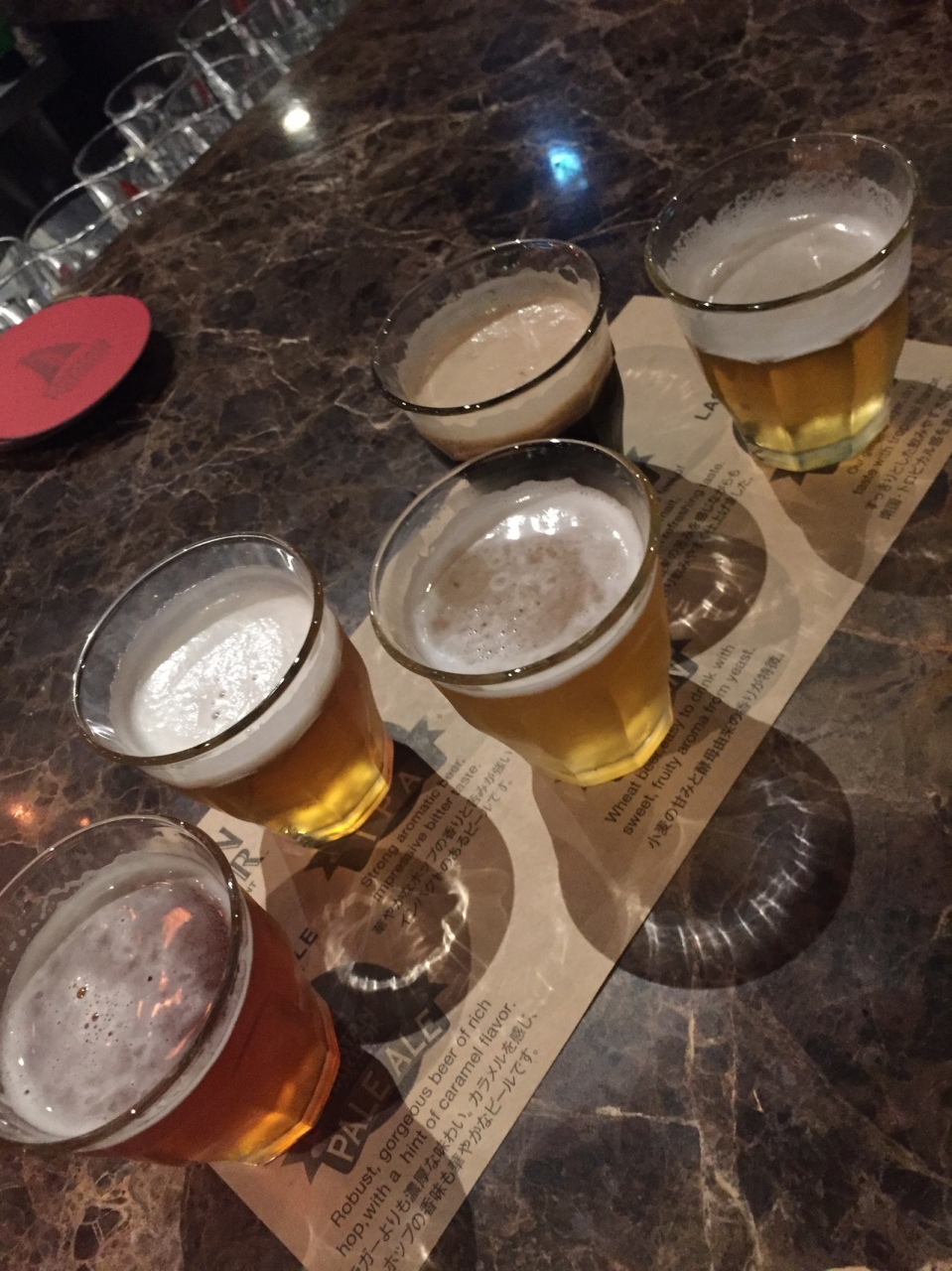 様々な種類のビールが飲めるお店で、タップが並び、外国人スタッフが注いでくれるビールを外国人客にまぎれて飲みます。
