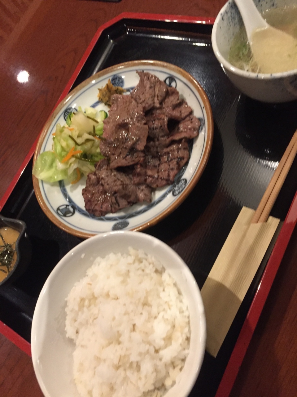 牛タンランチの1.5人前を食べましたが、とろろや浅漬け、スープが付いて値段的には手頃です。
