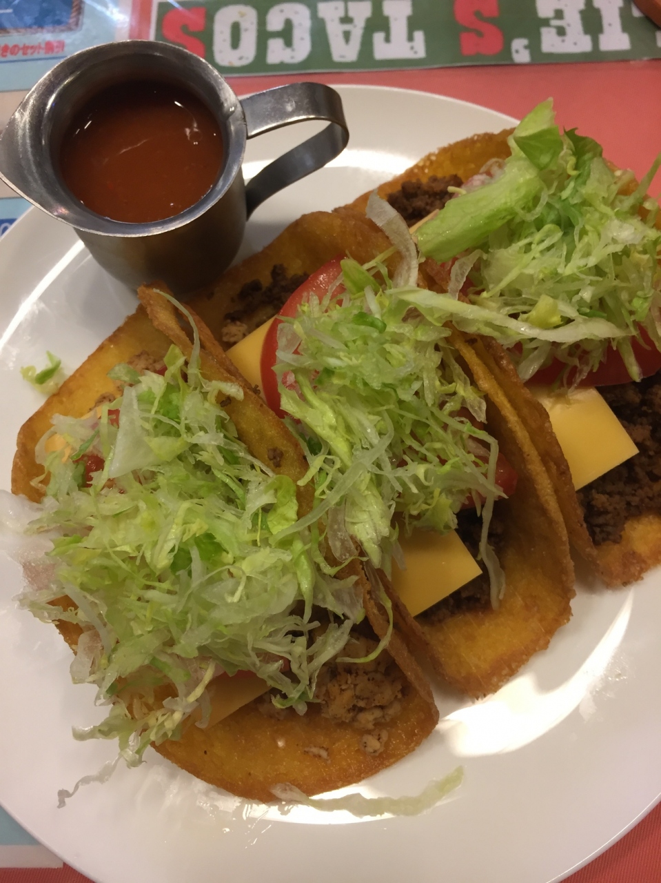 タコスはビーフ、チキン、ツナと3種類の味がありますが、個人的にはビーフが1番オススメです。- 旅行時期
