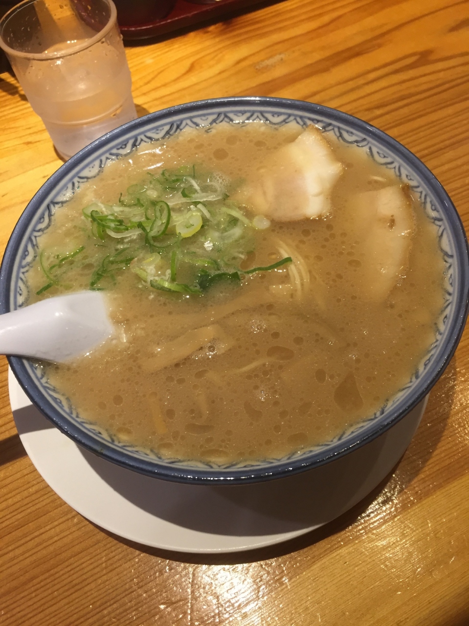 チャーシューにネギというシンプルな見た目ですが、スープは濃厚でありながらも臭みがなく、見た目よりあっさりと食べる事が出来ました。
