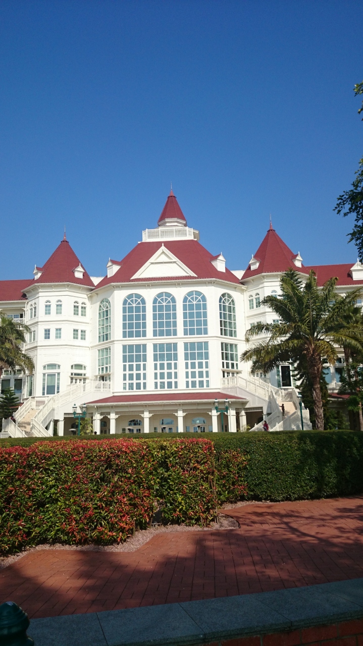 香港ディズニーランドホテルへは、パークからバスに乗り、5分程走った所にあります。