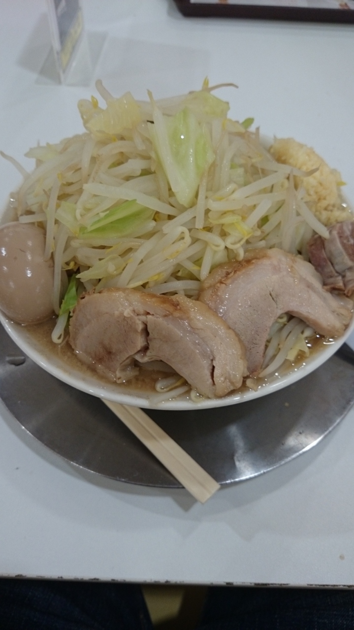 豚骨醤油のスープは、意外にあっさりで、上にのっている野菜(もやし)は少し泥臭かったです。