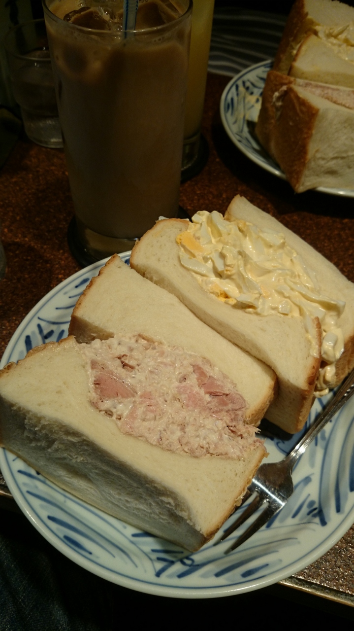 大きな口を開けても、はみ出てしまう程の大きさのサンドイッチがお手頃価格で頂けます。
