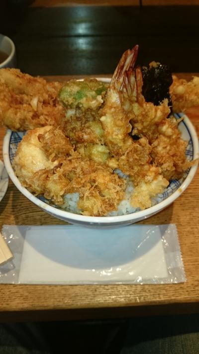 ゴマ油の良い香りとサクッと揚がった天ぷらに、丼つゆがたっぷりとかかって美味しく頂けました。