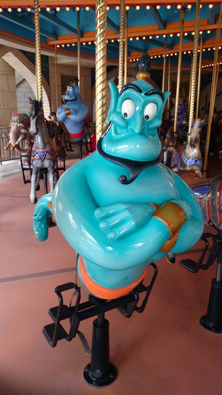 さすがはディズニー、馬だけでなくジーニーに乗る事も出来るのですが、人気があるので列の前の方に並んでいないと他の人に先に乗られてしまいます。