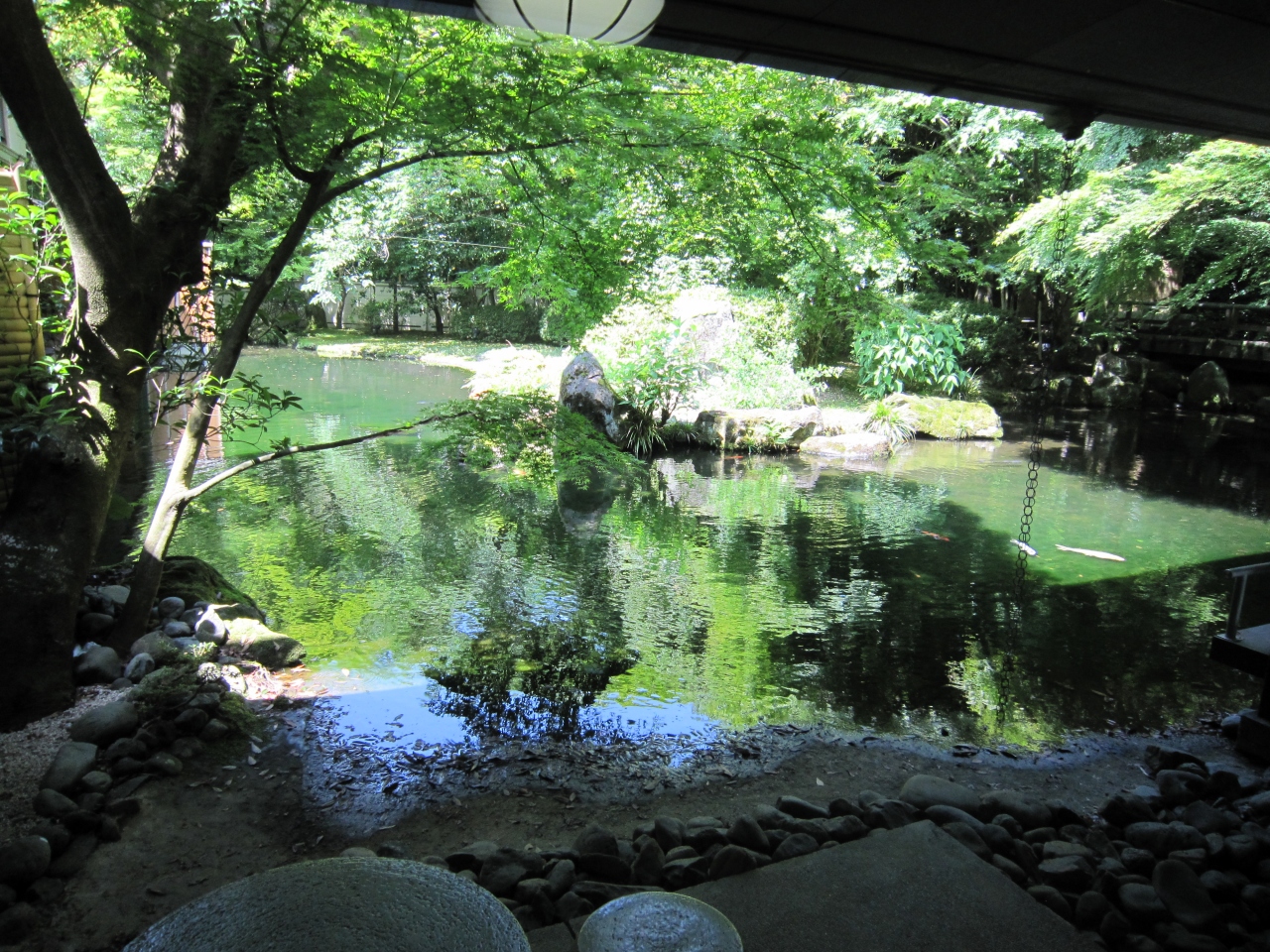 和室+ベッドルームのゆったりとした空間、池のあるお庭に面していて
