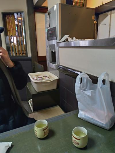 券売機はお店の外にあり、カウンターのみの狭い店内です。足元に荷物置き場はありますが、大きめの荷物は無理。冬はコートの脱ぎ気も憚られる感じです。