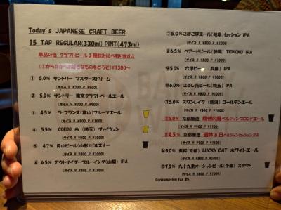 15種類のクラフトビールがあり、3種の飲み比べなどもできます。日によってメニューは変わりますが、IPAはいつ行っても5、6種類ぐらいあるので、IPA好きにはおすすめです。
