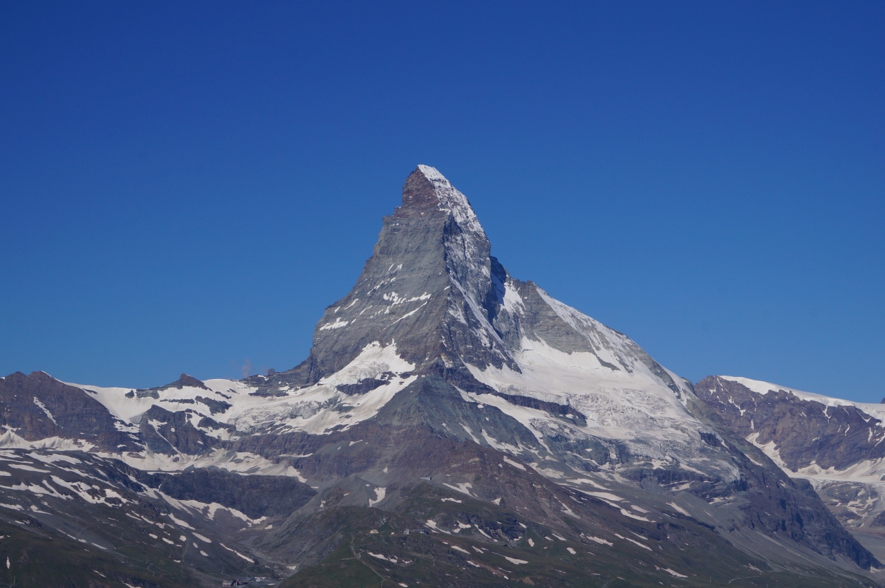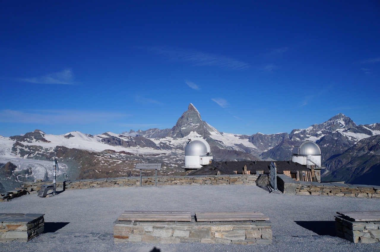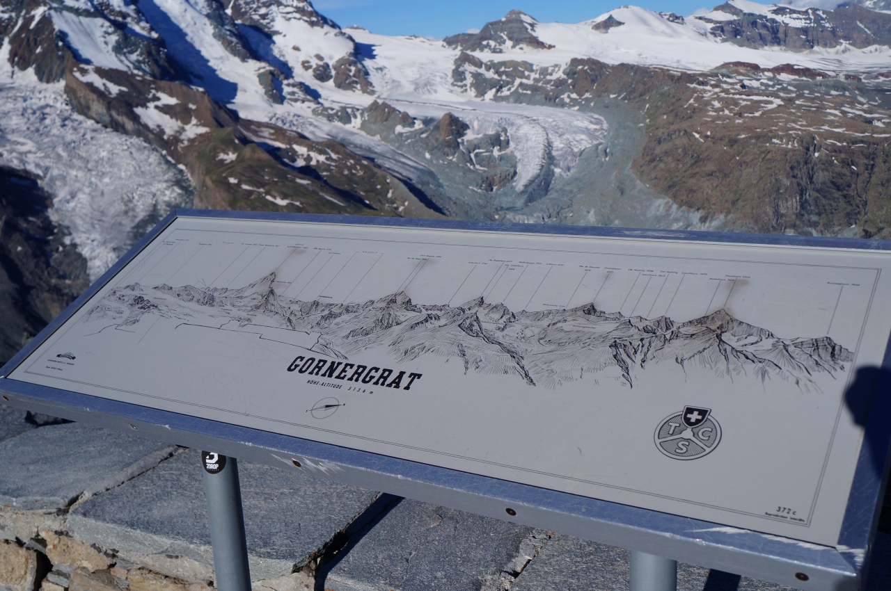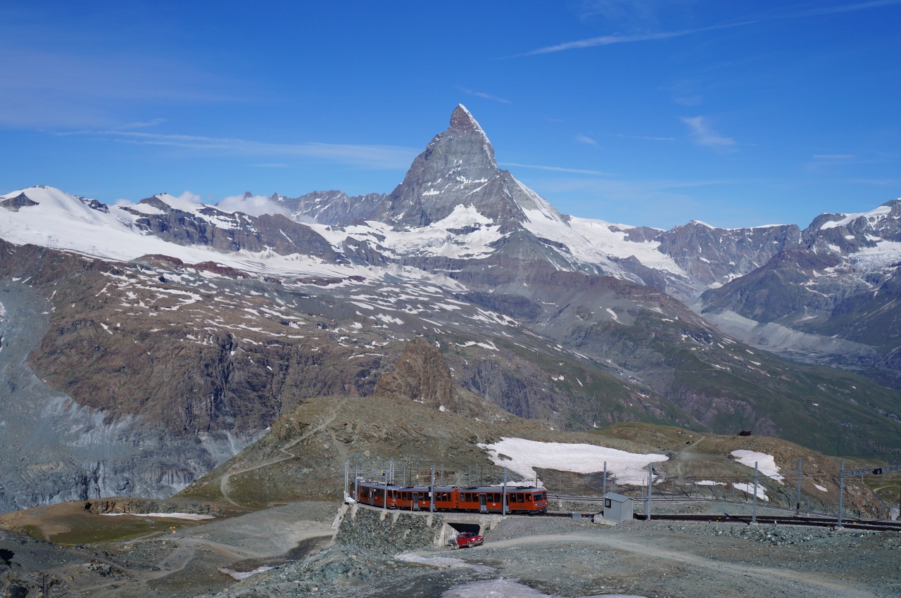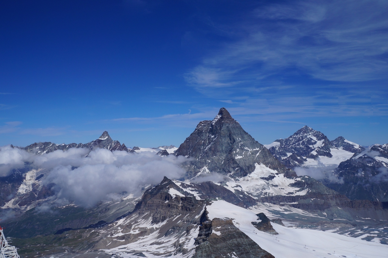 最後に、マッターホルングレッシャーパラダイス展望台からの眺望は、「マッターホルン、どこ???」というような、まったく見たことのないような違った形で、新鮮でした。- 旅行時期