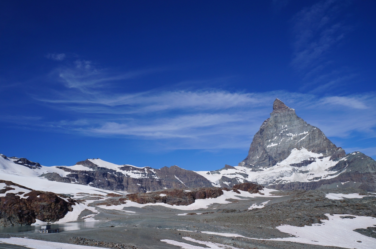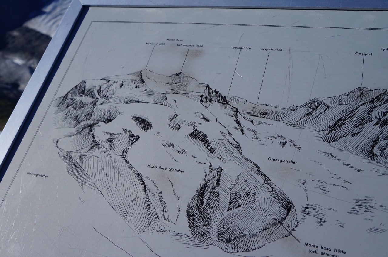 雄大な景色が周りに広がっているので、マッターホルンが少々かすみ、モンテローザやリスカムなど他の山々に目を奪われてしまいました。